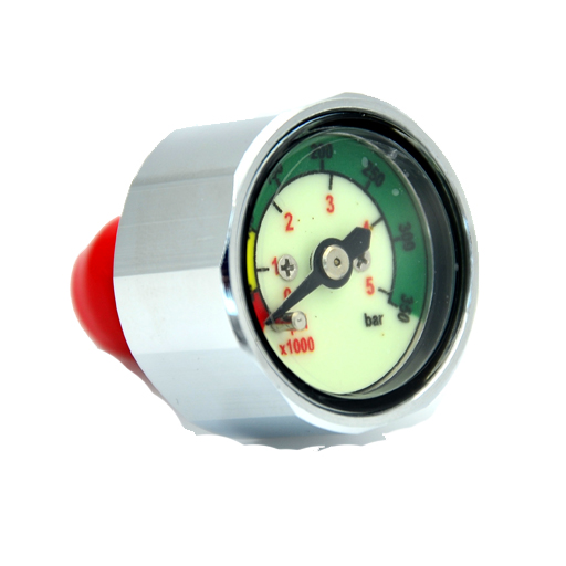 Featuring a clear, color-coded dial and a tough, chrome-plated brass housing, the Nautilus Button SPG reads pressure at a glance—no hose required. Its compact profile mounts directly into any standard 7/16” high-pressure port, making it ideal for streamlined setups where space and simplicity matter most.