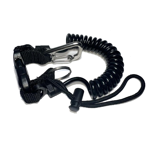 Coiled spring Lanyard that can safely hold many different types of dive accessories. Cameras, torches, slates, compass etc.